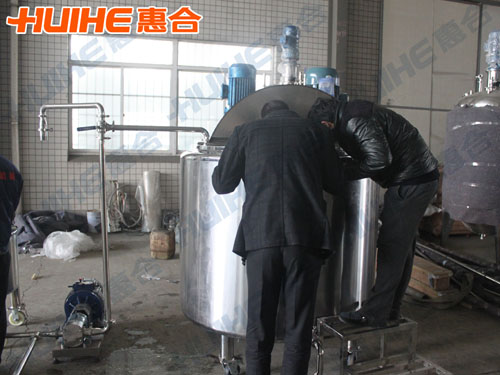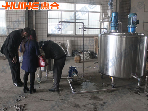 英國客戶需要加工類似蜂蜜的糖漿,欲采購不銹鋼容器用于其產(chǎn)品的加工。經(jīng)過與業(yè)務(wù)員的多次溝通協(xié)商,客戶于2014年11月底在我公司訂購1000L和100L各一臺乳化罐。歷時1個多月,設(shè)備終于順利完工。2015年1月9日,英國客戶來工廠驗貨,業(yè)務(wù)員和技術(shù)工程師對乳化罐作了詳細的講解,客戶對設(shè)備較為滿意。