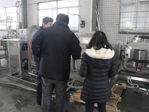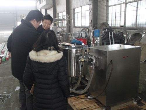 澳大利亞客戶因均質(zhì)牛奶需要,于2014年在我公司購買一臺高壓均質(zhì)機(jī)。由于不太熟悉均質(zhì)機(jī)的操作,2015年1月28日, 澳大利亞客戶來我工廠現(xiàn)場學(xué)習(xí),業(yè)務(wù)員與技術(shù)工程師熱情的對其進(jìn)行了設(shè)備的操作指導(dǎo)。