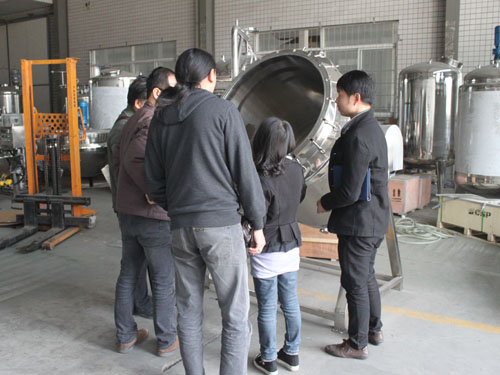 2015年4月21日下午,馬來(lái)西亞客戶需要采購(gòu)?qiáng)A層鍋、高壓蒸煮鍋和殺菌鍋設(shè)備,來(lái)我公司與業(yè)務(wù)員和技術(shù)工程師進(jìn)行具體細(xì)節(jié)的洽談,并到工廠參觀成品設(shè)備與現(xiàn)場(chǎng)制作流程。