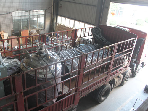 一場(chǎng)大雨過(guò)后,杭州又迎來(lái)了艷陽(yáng)高照的一天,2015年9月7日,我公司按照工期對(duì)北京某寵物食品公司的設(shè)備進(jìn)行完工發(fā)貨,裝運(yùn)車(chē)輛進(jìn)行設(shè)備裝車(chē)。此次發(fā)貨的設(shè)備有:夾層鍋攪拌罐、滾筒。