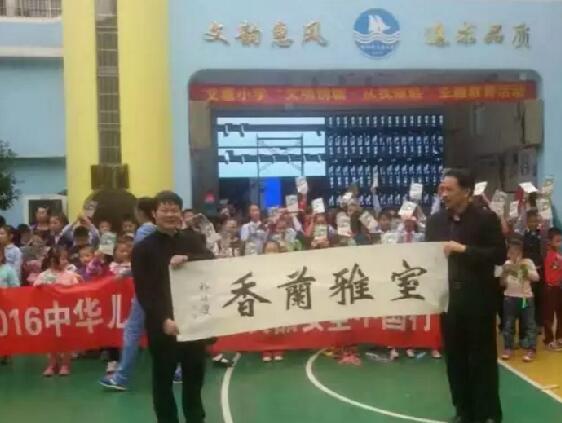 兒慈會工作人員為學(xué)校和愛心人士捐贈書法