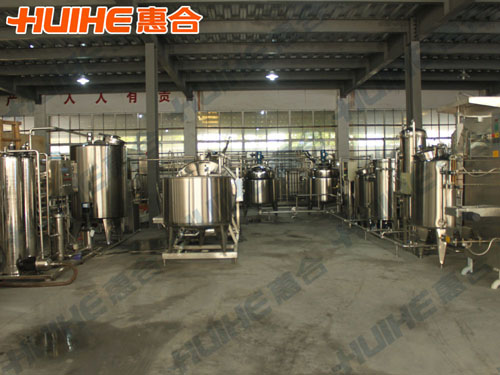 該成套設(shè)備是由水處理設(shè)備、儲水罐、膠體磨、漿渣分離機、老化缸、不銹鋼罐、超高溫瞬時滅菌機、真空脫氣機、殺菌鍋等單機設(shè)備組成的。